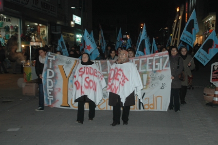 Yürüyüşün sonunda yaptığımız basın açıklamasında da kadına yönelik şiddetin ülkemiz emekçi kadınları için şiddet olgusunun devlet politikalarıyla nasıl iç içe geçtiğini ifade ederek örgütlü mücadelemizi yükselteceğimizi söyledik.